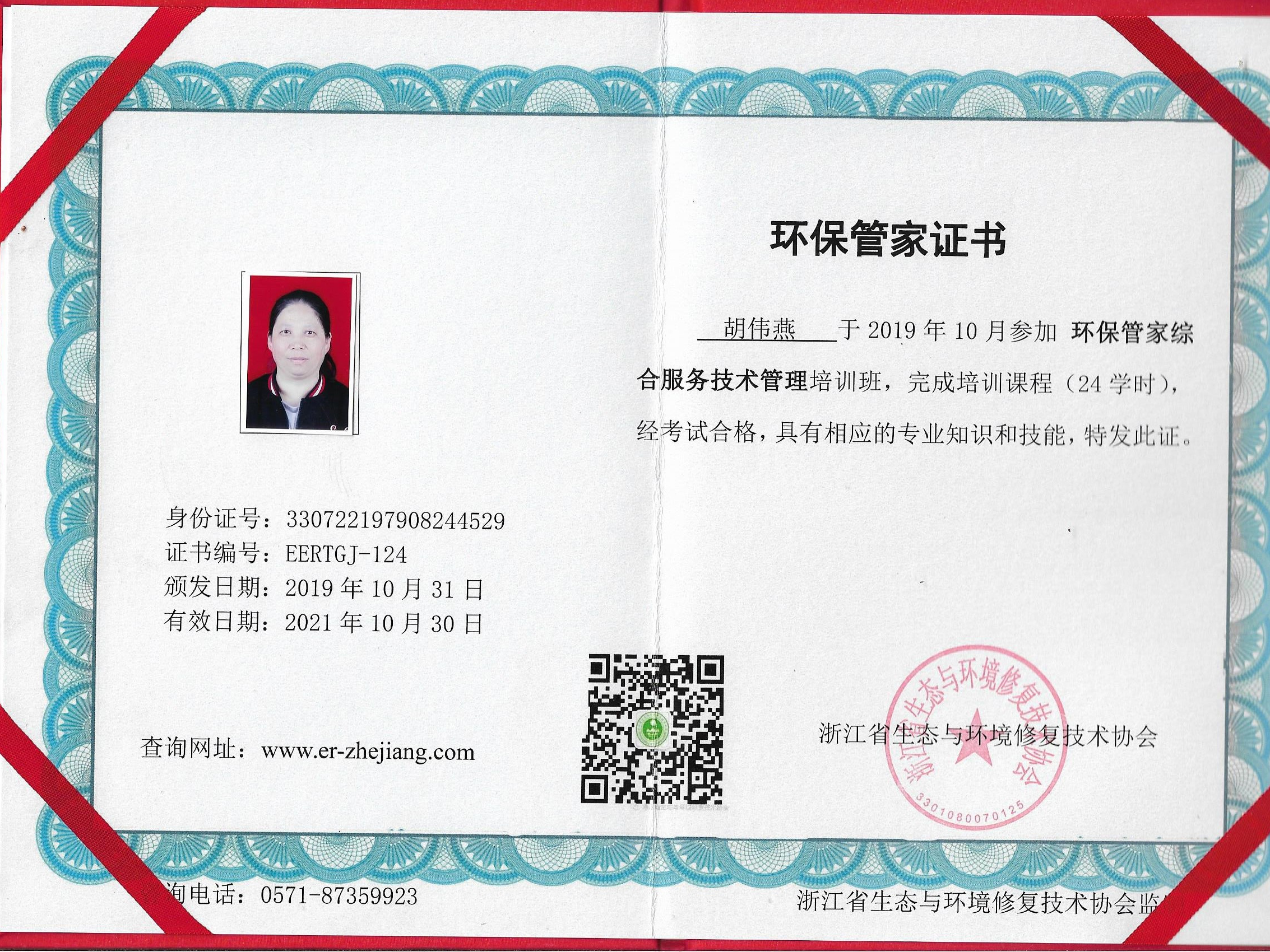 【环保管家】证书-胡伟燕